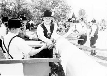 Für Aufsehen sorgte auch die Dampfmaschine mit Dreschwagen, die in mühevoller Kleinstarbeit von Hans Wimmer gebaut wurde und ihre Funktionstüchtigkeit einmal mehr unter Beweis stellte. Die Trachtler nutzten den Kirta auch, um den Verein selbst den Gästen näher zu bringen. So stellte Vereinsnäherin Grete Vorbuchner aus den verschiedenen Trachten eine kleine Ausstellung zusammen, bei der ein jeder Interessierte Einblick über die Trachtensache erhielt.